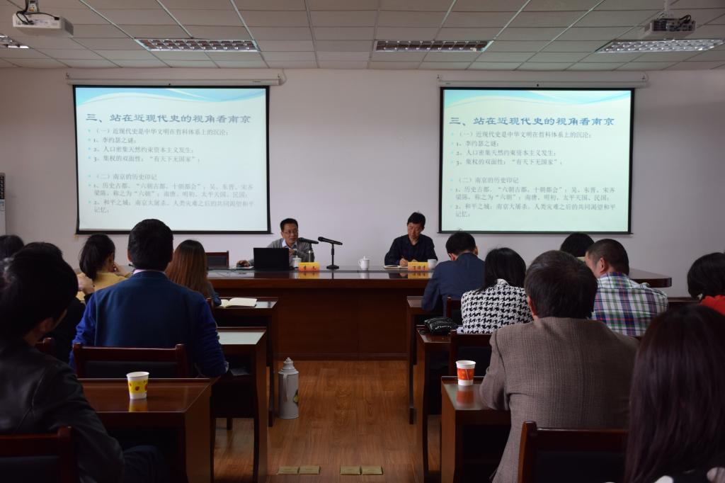 为进一步加强党员学习的积极性,丰富党员学习活动方式,4月17日下午,william威廉中文于我校仙林校区德济楼408会议室顺利举办 “南京70年:变迁与发展”主题报告会。报告由南京市社科院副院长、社科联副主席季文主讲,william威廉中文党委书记万绪才主持。william威廉中文全体师生党员参加。