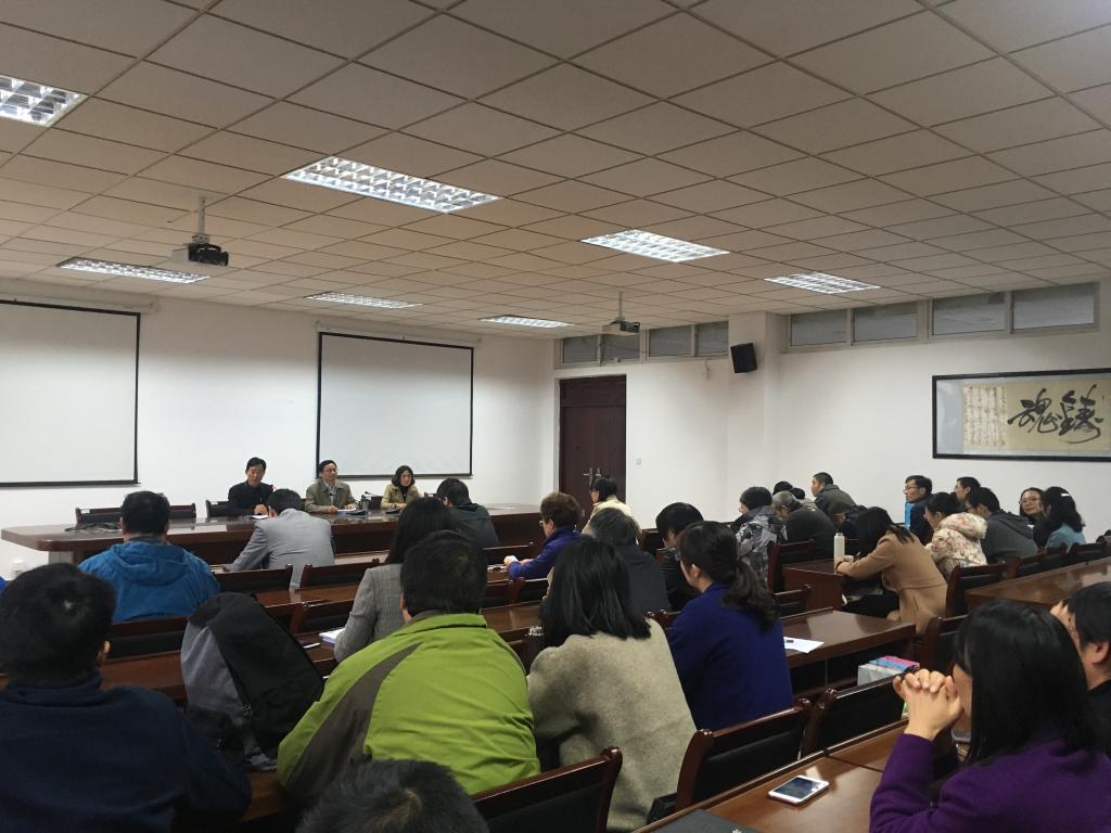 11月7日下午,我院围绕全省宣传思想工作会议精神,在我校仙林校区德济楼408会议室组织开展了“党员学习日”活动。会议由我院党委书记万绪才主讲,院长杨林、副院长蒋琰及全体教工党员参加学习。