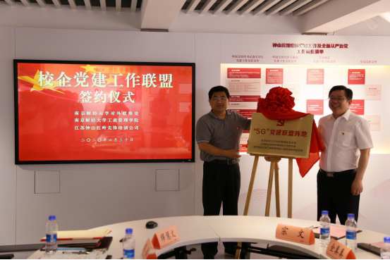 校党委常委、副校长乔均与钟山宾馆集团党委书记、董事长朱银生共同为党建工作联盟揭牌
