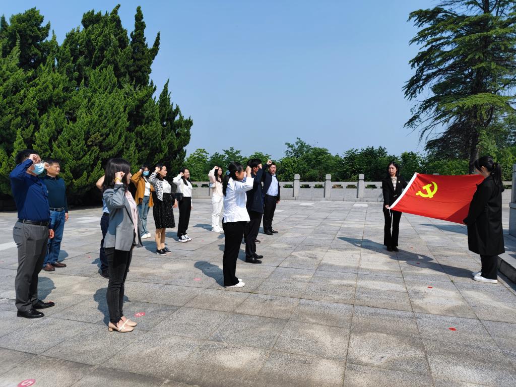 学院一行首先来到桂子山烈士陵园,瞻仰烈士纪念碑,缅怀革命先烈。张杰书记、万绪才院长代表学院向革命烈士敬献花篮。随后,学生代表、研究生党支部书记张萌在烈士纪念碑下发表“强国有我,请党放心”的青春誓言。全体成员在张杰书记的领誓下重温入党誓词。全体成员缓步绕碑一周,深切缅怀革命先烈的丰功伟绩。接着,讲解员深情地向党员们讲述了新四军桂子山烈士们的革命故事,使大家更加深刻地感受到革命先烈们为民族独立自强、为人民幸福生活抛头颅、洒热血、前赴后继、不怕牺牲的精神。最后,在参观陵园的过程中,张杰书记给全体党员上了一堂“行走的微党课”,要求全体党员要弘扬英烈精神,继承英烈遗志,坚定理想信念,锤炼党性,将学习的成果转化为推动工作的强大力量,凝心铸魂,在立德树人的教育征程中实干笃行,勇建新功。