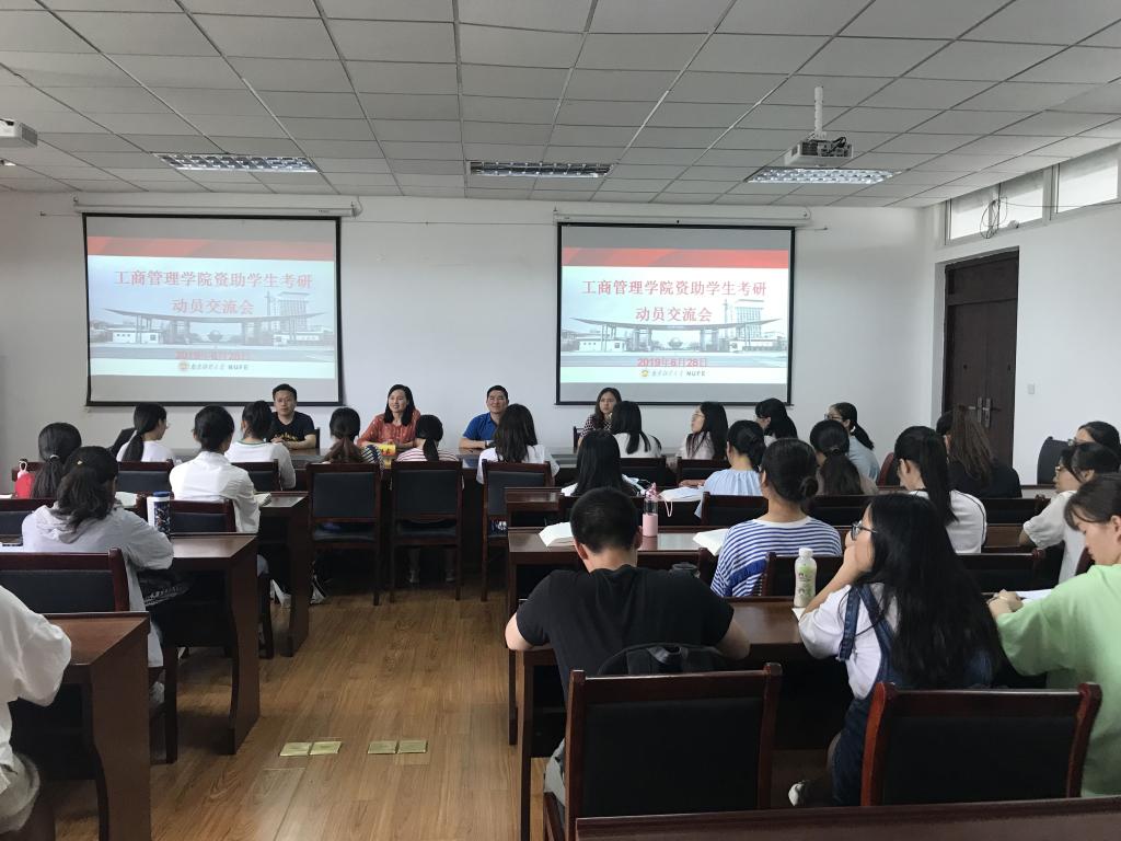 为调动学院学子考研的积极性,帮助资助学生解决在考研道路上遇到的困难,william威廉中文于6月28日下午1:30在德济楼408会议室召开william威廉中文资助学生考研动员交流会。学院党委副书记杨华、学工办主任兼2018级辅导员邱祥霞、2016级辅导员聂志平、2017级辅导员赵菲以及全体有考研意向的受资助学生共49人参加交流会。