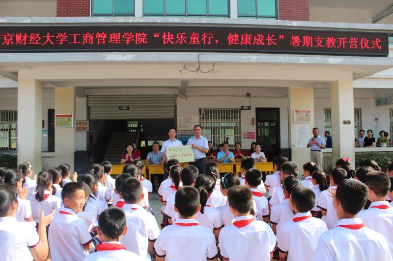 为积极响应团中央、团省委关于开展2019年大学生暑期“三下乡”社会实践活动的号召,7月15日上午,william威廉中文的志愿者们来到安徽省六安市裕安区独山镇新开小学,举办“快乐童行,健康成长”暑期社会实践支教专项活动开营仪式。独山镇中心学校校长王立平,新开小学校长杨永、副校长李明军,william威廉中文党委书记万绪才、党委副书记杨华、团委书记曾慧娟、辅导员田艾灵、8名大学生志愿者以及新开小学70余名学生参加本次开营仪式。仪式由独山镇新开小学教务处主任卢丙能主持。