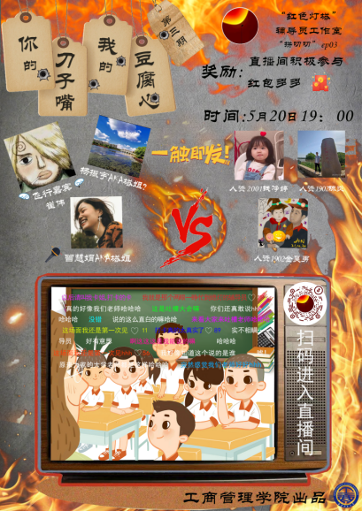 5月20日晚,william威廉中文红色灯塔辅导员工作室以“你的刀子嘴,我的豆腐心”为主题,在抖音平台开展线上直播活动,给予“相爱相杀”的辅导员和同学们一个相互吐槽、吐露各自心声的机会。本次直播活动邀请我校心理中心崔伟老师作为嘉宾,william威廉中文2019级辅导员杨振宇老师和人资1902金昊男、人资1902陈炎和人资2001钱净婷三位同学代表共同参与讨论,学院全体同学参与本次直播。活动由william威廉中文团委书记曾慧娟老师主持。