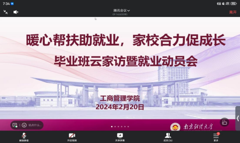 为持续凝聚育人合力,宣传国家资助政策,增强资助育人实效,2024年2月20日晚,我院召开“暖心帮扶助就业,家校合力促成长”2024届毕业班云家访暨就业动员大会,学院党委副书记尹海燕老师、毕业班辅导员冯玲老师以及2024届全体家庭经济困难学生和家长共同参会,会议由辅导员冯玲老师主持。