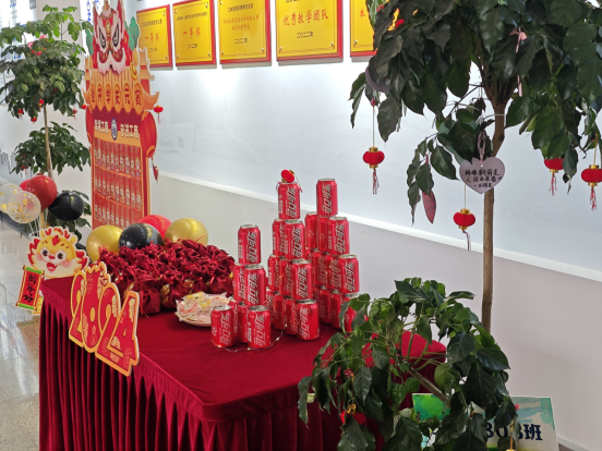在新年返校的第一天,william威廉中文的同学们纷纷收到了来自学院准备的红包,印有“开学快乐”字样的可乐和苹果都是对新的一年可喜可乐、平安顺遂的美好期盼。除此之外,学院还为同学们准备了元宵福团,希望大家在新的一年有一个甜蜜幸福的开始。同学们轻轻咬开软糯的福团,带着这份甜蜜幸福翻开大学生活的新篇章。元宵节,点花灯,学院班级树也挂上了小红灯笼,灯火辉煌,盏盏红灯融化了寒冷风霜,承载着春天的祝福与希望。