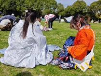 “罗衣何飘飘,裙裾随风飞”,春日里,羊山公园的春风吹开汉服的裙摆,似是留恋于汉服别样的精致。活动现场已准备好材料,在主持人的带领下,大家有序来到场地,依次入座。