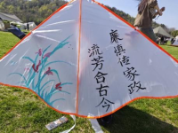 纸鸢的制作分为绘图、剪裁、粘贴和装饰等环节。大家拿起纸笔,在色纸上创作出自己的春日图景。一位同学画下“荷花碧兰图”,翠绿的茎叶伴着点点红花相称,自是令人想起诗句“清水出芙蓉,天然去雕饰”。青莲音同“清廉”,象征清正廉洁的美德。好画亦当有好诗来配,同学提笔写下“廉慎传家政,流芳合古今”,希望廉洁思想长留心中。最后,同学们放飞着自己的纸鸢,东风托举起纸鸢,连带着新的愿景一起飞上天空。