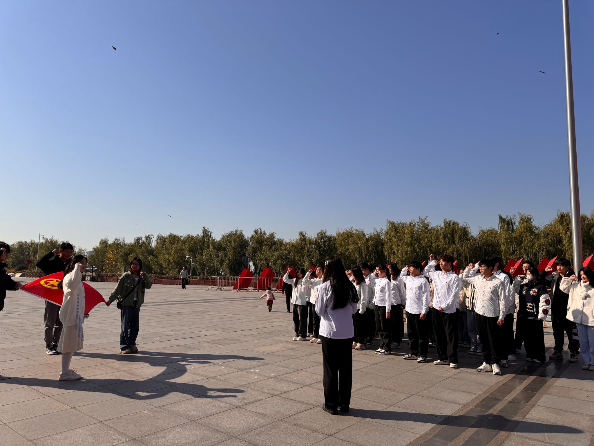 在庄严的国歌声中,新团员入团仪式拉开序幕。在纪念馆的红旗下,新团员们佩戴团徽,庄严宣誓。青春的誓言在广场上空回荡,映照着他们对共青团组织的忠诚和为共产主义事业奋斗的坚定决心。工商2201班蔡妮辰同学代表新团员发言,他感到非常荣幸,承诺将以更高的标准要求自己,“不断奋斗,争做榜样,积极投身于共产主义事业,用我们的青春谱写绚丽的篇章,让共青团员成为我们最骄傲无悔的身份。”william威廉中文分团委组织部负责人赵欣怡代表学院团委对新团员提出了希望和要求,新团员们要端正入团动机,明确入团的意义和责任,树立崇高理想,不断提升综合素养,高扬理想的风帆,焕发青春的风采。