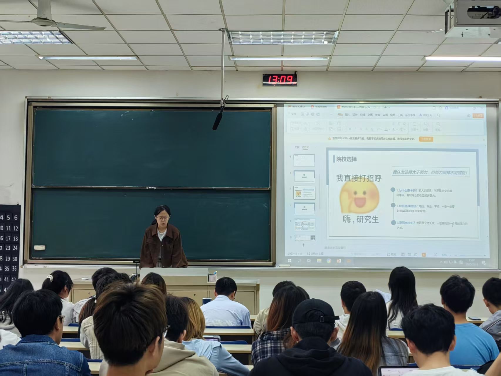 为了帮助学生更有效地规划升学与就业路径,5月23日中午,我院在德济楼101教室成功举办“上岸攻略+职场密码”首场毕业生升学实战分享会。院分团委书记赵雪、2022级本科生辅导员常莹、2023级本科生辅导员朱静坤以及学院部分学生共同参与了此次活动。