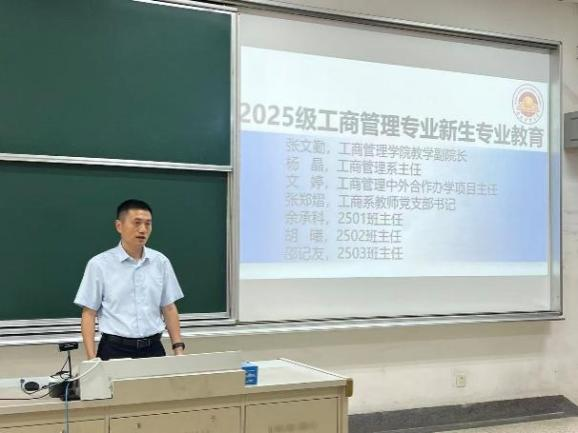 为帮助2025级新生聚焦学业规划与职业发展方向,搭建清晰的大学学习与成长框架,9月5日上午,我院工商管理专业、人力资源管理专业以及旅游管理专业分别在德济楼103、117、210教室开展新生“开学第一课”。院长万绪才、副院长张文勤、刘泽华,各系主任、专业教师、高年级学生代表以及2025级全体新生参加本次课程。