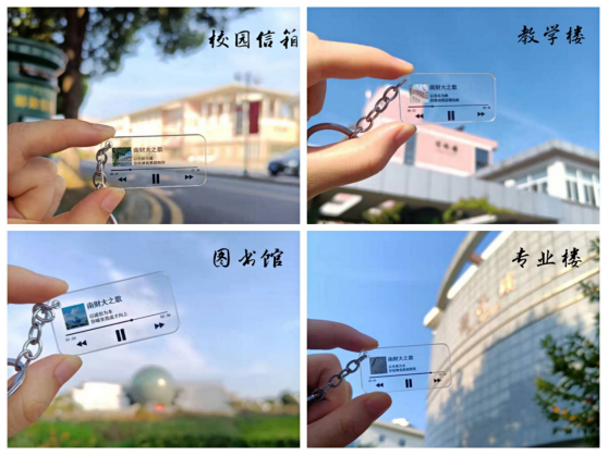 在学院新生报到处,每位新生都收到了一枚特殊的一块钱硬币,硬币贴有一边喊着“一块奋斗呀”一边奔跑的小黄鸭,收到这份礼物的新生们都感到既兴奋又惊喜。同时,学院还为新生们准备了印有校园风景与学校校歌的歌词钥匙扣,牢牢地“扣”住了萌新们的心弦。
