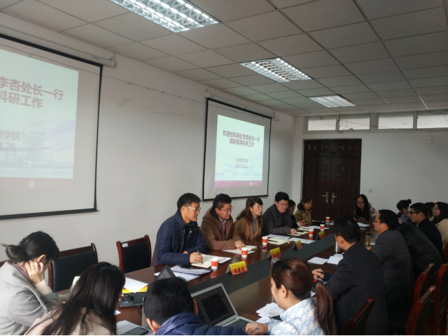 11月26日上午,科研处处长李杏,副处长杜修立、肖玉杰,以及石霏、王建立、范兆娟老师一行6人到我院调研科研工作。学院党委书记万绪才,副院长奚国泉、万兴,系主任以及部分青年教师和科研秘书参加了座谈,座谈会由院长杨林主持。