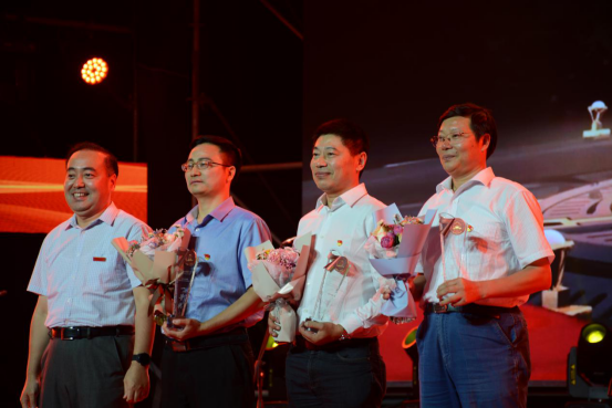 校领导班子成员为获得最佳组织奖的学院颁奖(右二:杨林院长代表我院上台领奖)