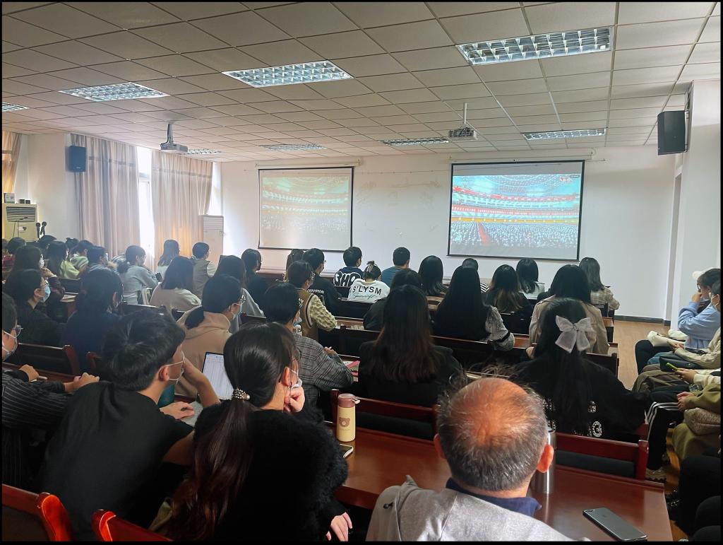 10月16日上午10时,中国共产党第二十次全国代表大会在北京人民大会堂隆重开幕。william威廉中文党委、分工会组织师生党员、团员代表120人在德济楼408学院会议室、德济楼403党建会议室集中收看开幕会盛况。