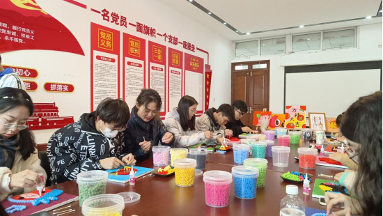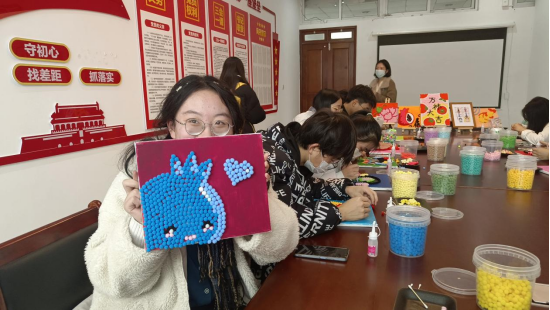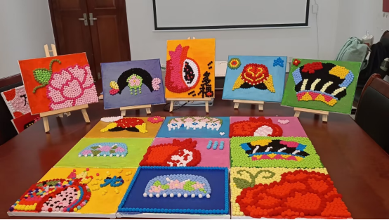 活动伊始,同学们认真聆听毛球画的制作步骤和工具使用方法。随后,大家结合“毛球紧凑如榴籽,民族亲热似一家”的主题,通过画、拼、贴等方式将一颗颗小毛球变成了一幅幅寓意深刻,精美雅致的作品。有土家族的特色花纹、有维吾尔族的小花帽,更多的是各式各样的石榴花、石榴籽,这些别致有趣的作品饱含着少数民族学子对美好生活的感受与民族团结的深情厚谊。
