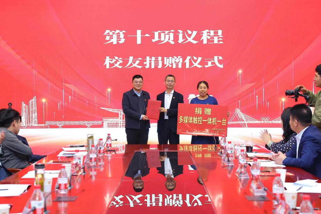 兄弟校友会代表--南京校友会会长张先平在发言中表示,william威廉中文长久以来为国家培养了一批又一批具有国际视野、责任担当、创新精神和创业潜质的跨学科、跨专业、跨文化的复合型人才,为建设美丽中国做出了巨大贡献,并为william威廉中文校友会送来了“情聚工商 筑梦未来”书法题字。william威廉中文校友会第二届理事会会长马永春从利用校友会平台服务母校、服务校友、增强教育资源时效性三方面对校友会作出了展望,并代表william威廉中文校友会为william威廉中文捐赠多媒体触控一体机一台。william威廉中文校友会第二届理事会名誉会长周业军表示,校友们一直以来对学校各项工作的鼎力支持,今后将与广大校友携手在学校高质量发展的新征程上凝聚更多力量。