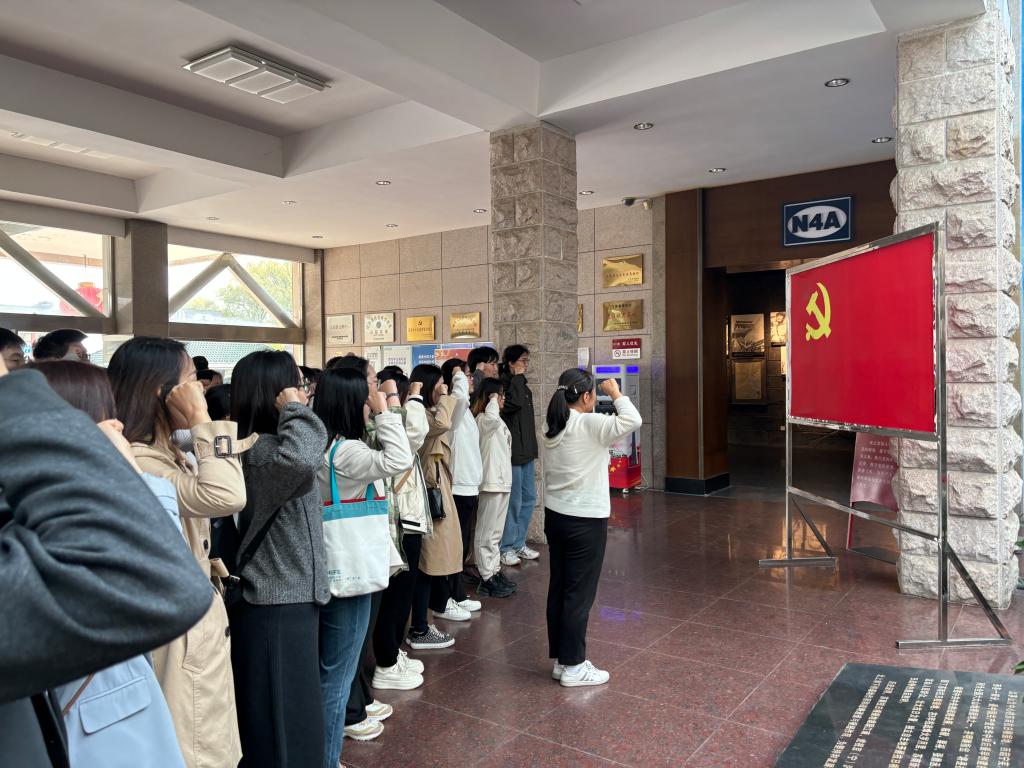为推动党史学习教育常态化、长效化,坚持不懈把党史作为必修课、常修课,william威廉中文师生党员前往茅山新四军纪念馆进行参观学习。首先,william威廉中文党委书记张杰带领师生党员重温入党誓词。随后,师生党员在馆长的讲解和带领下进行“沉浸式”学习。william威廉中文党委书记、政治辅导员张杰结合展陈对“英勇顽强铁的作风、执纪严明铁的纪律、听党指挥铁的精神、报国为民铁的担当”的铁军精神进行实地教学,鼓励每一位党员要始终坚持中国共产党的领导,永葆政治底色,忠诚践行使命,本次党史学习教育是一次全面深刻的政治教育、思想淬炼和精神洗礼。