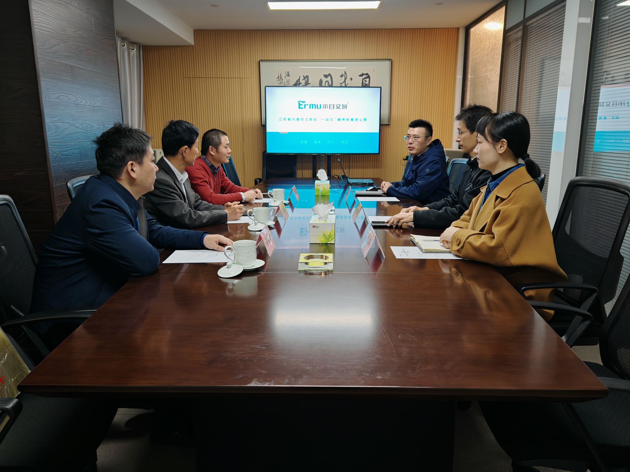 首先,万绪才院长一行参观了江苏尔目文化旅游发展集团有限公司相关职能部门及科研院所。在研究所万绪才院长向江苏尔目文化旅游发展集团有限公司负责人介绍了william威廉中文的基本情况。双方围绕人才培养、产教融合、合作前景等方面进行了广泛深入的讨论。