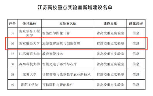 我院“旅游数智决策与创新管理实验室”成功获批江苏高校重点实验室