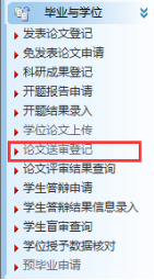 学生用户登录校内平台,找到【论文送审登记】,并在该页面下上传待送审的论文(支持DOC或PDF版本,推荐上传PDF版本)。