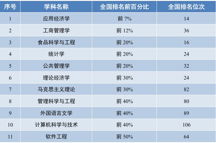 拥有应用经济学、工商管理、食品科学与工程等江苏高校优势学科3个。