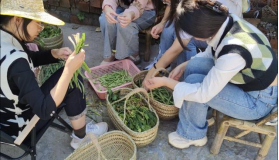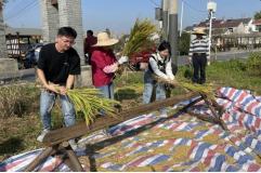 在村民的指导下,同学们积极开展割稻打稻劳动。在劳动过程中,同学们感叹劳动的辛苦和一粥一饭的来之不易。同学们还自主摘菜、择菜、洗菜,沉浸式体验最原始的农家生活。