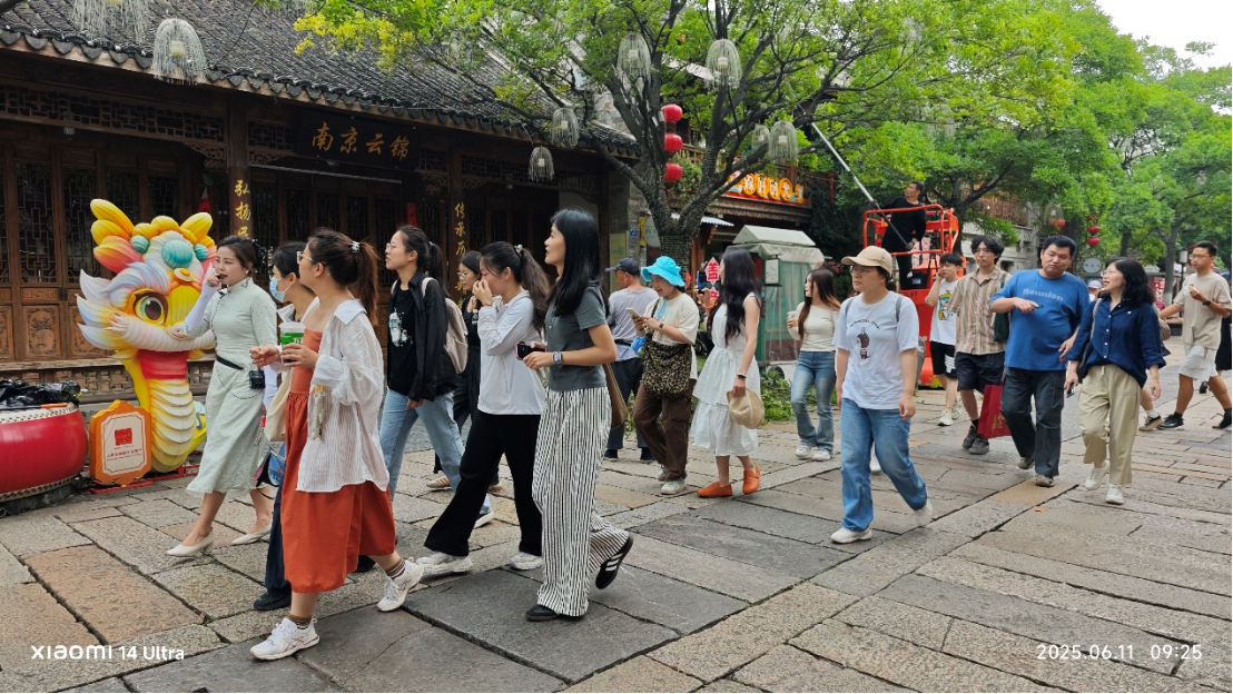 为提高我院MTA专业教学质量,丰富MTA专业授课模式,将理论知识联系实际案例,6月11日,旅游管理系丁敏、熊佳和丁蕾老师带领学院2024级MTA专业研究生走进老门东历史文化街区和小西湖城市微更新改造片区,开展《旅游营销》《旅游产业前沿专题》和《酒店经典案例研究》课程实践教学。