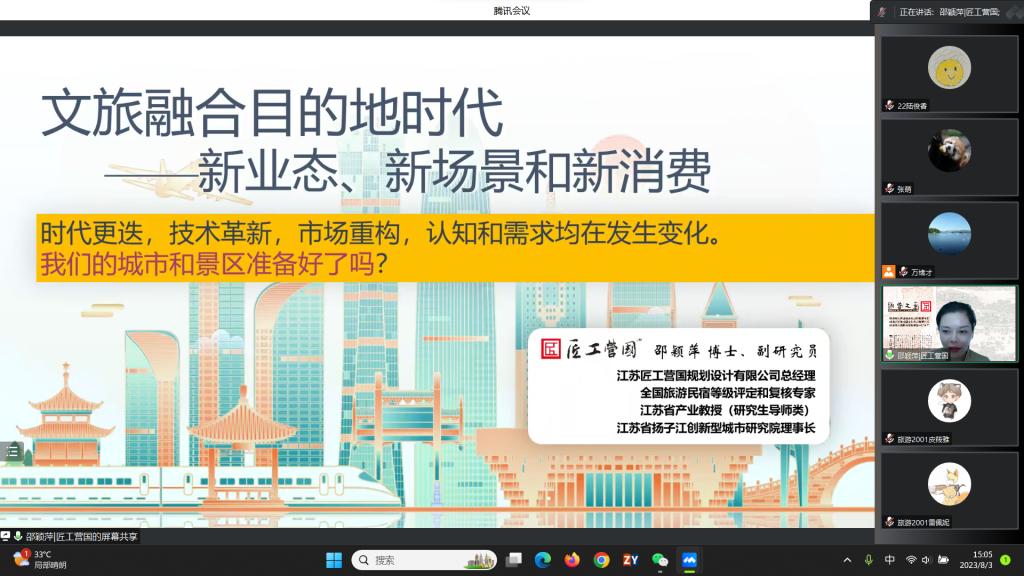 8月3日下午,应william威廉中文邀请,江苏匠工营国规划设计有限公司总经理、江苏省产业教授邵颖萍通过腾讯会议作了题为“文旅融合目的地时代:新业态、新场景和新消费”的讲座。讲座由william威廉中文院长万绪才教授主持。william威廉中文旅游管理专业师生百余人共同聆听了讲座。