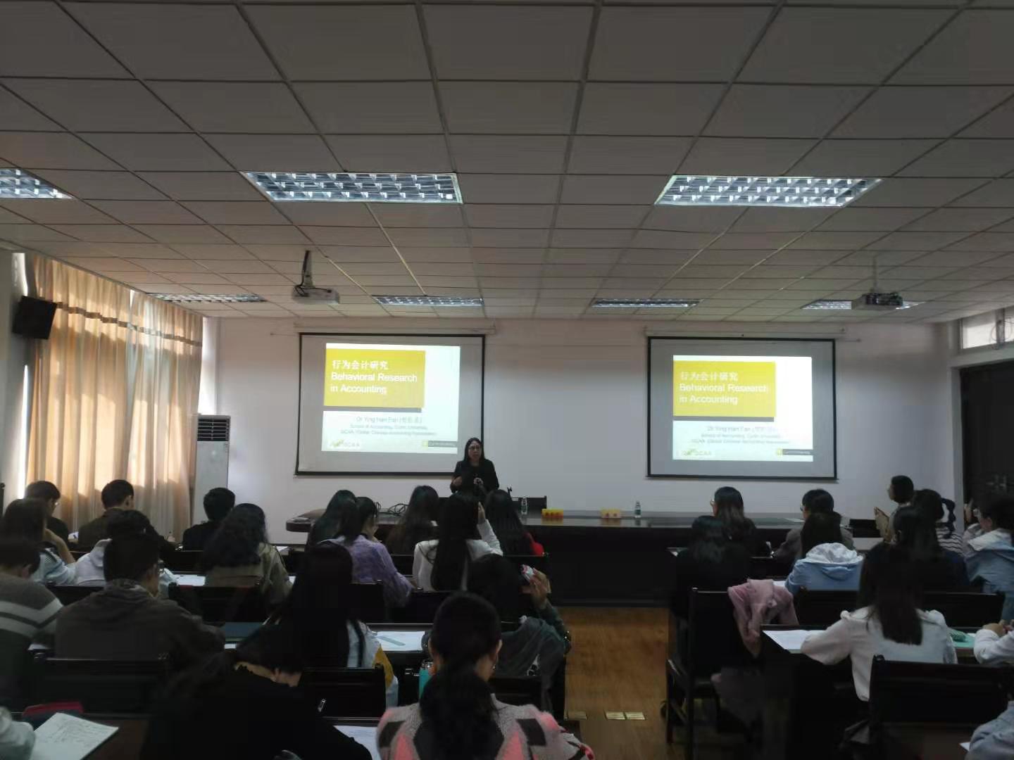 讲座伊始,樊影菡教授先阐释了“定性与定量研究”方法上的区别,然后从“行为会计研究”的视角出发,结合自身研究分别就 “行为会计研究模型”,“行为会计研究数据分析方法”,“研究工具的开发和有效性检验”以及“实验研究方法”等进行了报告,报告从研究的严谨性出发,引导研究生关注模型构建中的细节与实际操作,对于心理学如何在会计研究中运用具有较好的指导。报告结束后,樊影菡教授还与研究生就海外攻读博士学位等相关学习进行了深入地探讨与交流。
