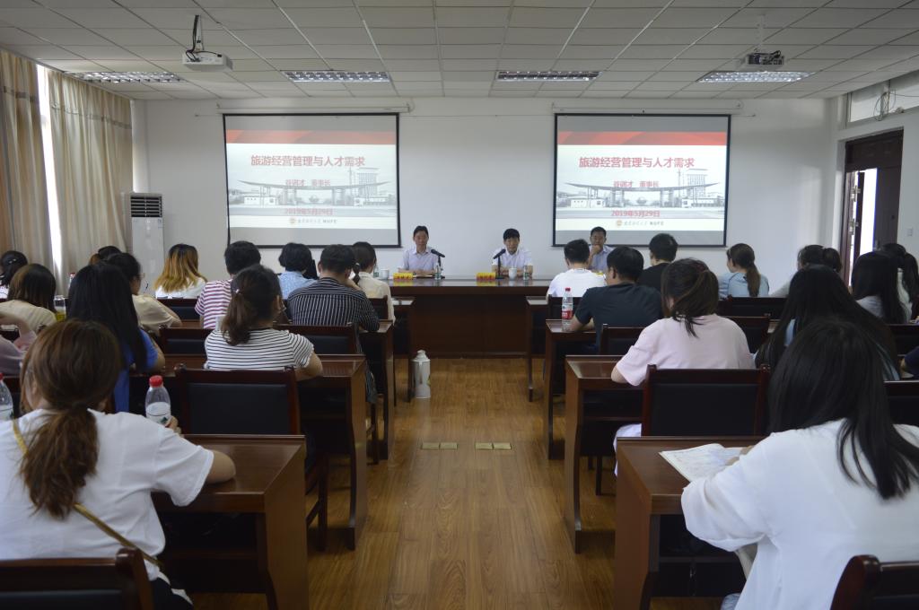 5月29日下午,应william威廉中文邀请,我校广东省校友会会长,中国国旅下属企业董事长,86届校友谷训才于我校仙林校区德济楼408会议室作主题为“旅游经营管理与人才需求”的讲座。william威廉中文党委书记万绪才、校友会副处长王冲及旅游管理专业部分学生聆听了此次讲座。讲座由万绪才书记主持。