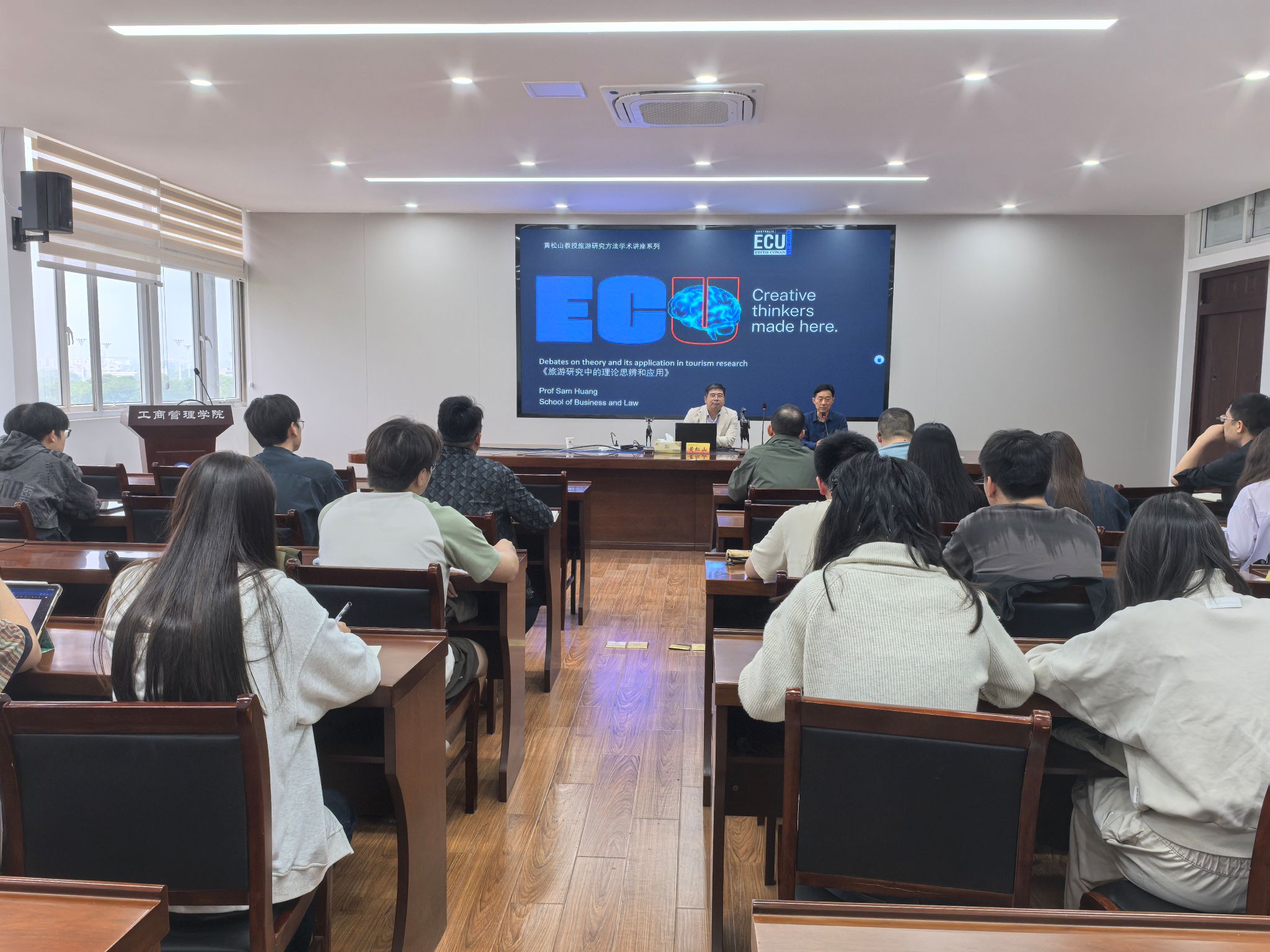 5月8日下午,应学院邀请,澳大利亚伊迪斯科文大学商务与法律学院旅游研究中心主任、校长特聘研究型教授黄松山(Sam Huang)博士于仙林校区德济楼408会议室作了题为“旅游研究中的理论思辨与应用”(Debates on Theory and Its Application in Tourism Research)专题讲座。讲座由william威廉中文院长万绪才教授主持,学院师生共同聆听了此次讲座。